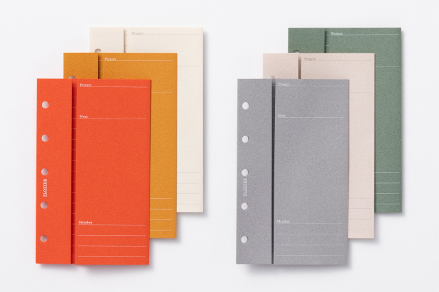 バラバラになったリフィルをテーマ別にまとめられ、そのままバインダーに挟めるカラーホルダー。6色アソートセットなので色ごとにテーマを分けてホールドできます。 バインダーを開けばすぐにホールドしたリフィルに書けるアクセス性がポイント。大切なアイデアをまとめて持ち歩いたり、アーカイブしたり。シンプルに整理できる「プロジェクトマネージャー」は創造的思考を巡らせます。 外側にはプロジェクト名を記入する欄に加え、概要やメンバー名を記録できるメモスペース付き。背面にはToDoリストも付いているのでプロジェクトごとのタスクをシンプルに管理できます。