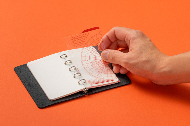 バリエーション豊富なスケールや線幅ガイドがクリエイティブワークをフォローします。 リングを開かなくても着脱可能なので、必要な時に必要な場所へすぐに移動できます。 右上はインデックス形状となっているので、バインダーを閉じても広げたいページにすぐにアクセスできます。
