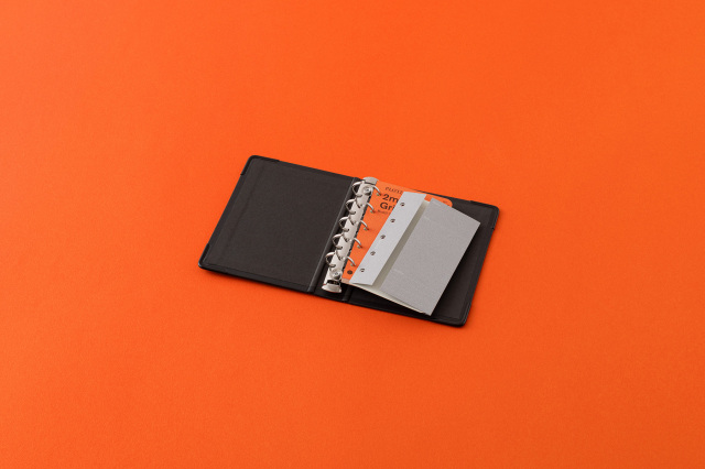 出し入れがしやすいシンプルなリング仕様。『No.008 プロジェクトマネージャー』と併用することでアーカイブページをまとめたアイデア倉庫としても管理・運用できます。 太径リングでたくさんのリフィルを保管できるストレージ。 強度と汚れへの強さを兼ね備えたクロスペーパーを使用。表紙には箔押しのサークルマークも。