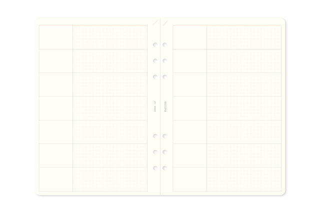 右側のスペースは4㎜方眼デザイン。PLOTTERのアイコンフォーマットである2㎜方眼の2倍のスケールなので、両者のリフィルを隣同士で挟んでも相性が良いです。