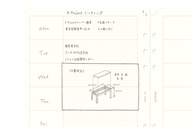 1週間の予定や、メモやアイデアを整理しながら書き込めるので、情報がスッと入ってくる、見やすい&分かりやすいノートに仕上がります。