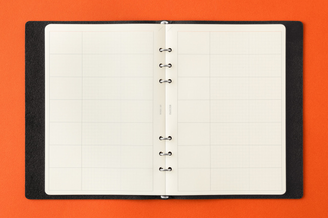 色天のりでページをまとめたパッド仕様なので、必要な時に必要な分だけ切り離し、6穴リングレザーバインダーで大切なアイデアを編集できます。