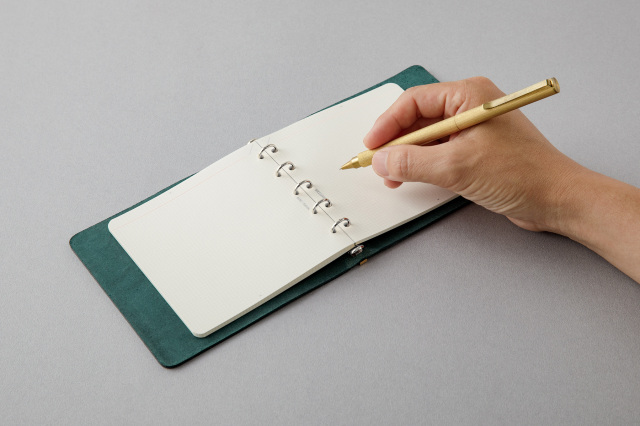 薄さと軽さにこだわった5穴レザーバインダーは1枚革でできているので開きやすく、