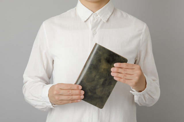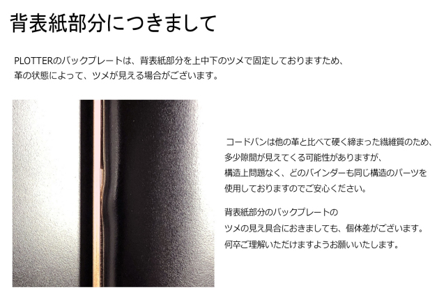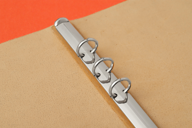 ※レザーバインダーは、背側で折り曲げてしまったり、表紙を折り返して使用すると、バインダー金具(リング)が外れやすくなる可能性がございますのでご注意ください。