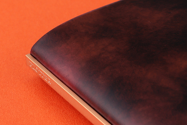 日本の職人技によって生まれた美しいバックプレート。コードバンのバックプレートは、柔らかく上品なコッパー色。