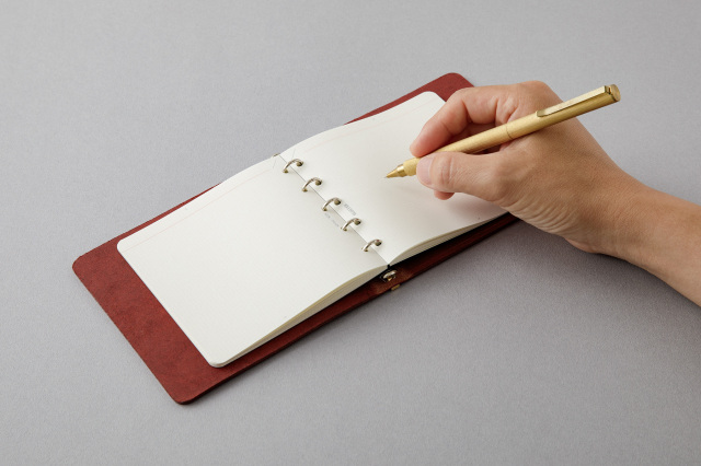 薄さと軽さにこだわった5穴レザーバインダーは1枚革でできているので開きやすく、