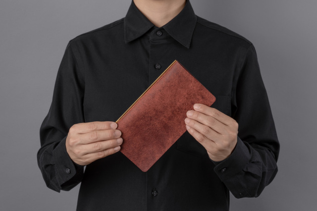 薄さと軽さにこだわった5穴レザーバインダーは1枚革でできているので開きやすく、